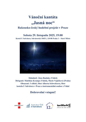 am 29.11.2025 um 19:00 gemeinsam mit dem Prager Salvatorchor in der evang. Salvator-Kirche in Prag.